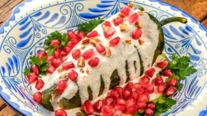 Chiles en nogada là một trong số những món ăn được người dân bản địa rất ưa chuộng. Để làm món này, đầu bếp nhồi picadillo (hỗn hợp trái cây sấy khô, thịt vụn và gia vị) vào ớt poblano và rưới lên bề mặt sốt kem óc chó và những hạt lựu đỏ bắt mắt. Người Mexcio hay làm món này vào dịp lễ kỷ niệm ngày Độc lập của đất nước (16/9 hàng năm). Nếu chú ý quan sát kỹ, bạn sẽ phát hiện cách trang trí tỉ mẩn của món này giống như đang mô phỏng lại màu của cờ Mexico với màu xanh lá từ ớt poblano, màu trắng của sốt kem và màu đỏ của hạt lựu.